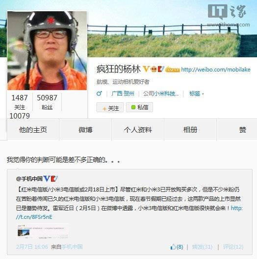 小米3系列手机已经发布近半年时间了,更是随着小米3联通版的上市,不禁有人要问小米3电信版何时上市?在1月19日,小米CEO雷军曾在微博中表示,小米3电信版二月中旬发布。日前,雷军再次在微博中宣称,小米3电信版和红米电信版很快就会来。