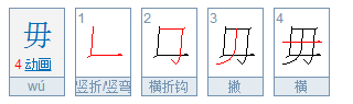 14.“毋”字的笔顺是:竖折/竖弯、横折钩、撇、横。