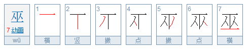 16.“巫”字的笔顺是:横、竖、撇、点、撇、点、横。