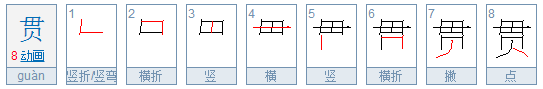 15.“贯”字的笔顺是:竖折/竖弯、横折、竖、横、竖、横折、撇、点。