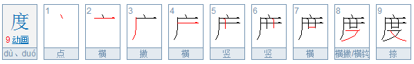 25.“度”字的笔顺是:点、横、撇、横、竖、竖、横、横撇/横沟、捺。