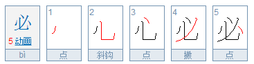 6.“必”字的笔顺是:点、斜钩/卧钩、点、撇、点。