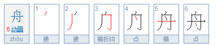 10.“舟”字的正确笔顺是:撇、撇、横折钩、点、横、点。