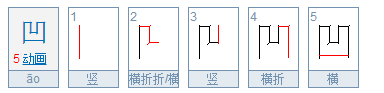 4.“凹”字的笔顺是:竖、横折折/横、竖、横折、横。