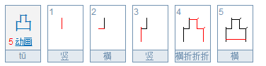 5..“凸”字的笔顺是:竖、横、竖、横折折折、横。