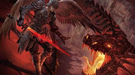 随后路西法和撒旦反叛,米迦勒实力远远不如他,所以在最后还是靠着上帝来将他们打败,可以说米迦勒的内心是绝望的,在这里划重点路西法只是被击败而没有被消灭,最后被放逐到地狱当中。因为地域的元素,使得路西法实力大减,这才有了后面米迦勒带领天使与路西法、撒旦两个恶魔首领战斗了长达四十九年战争。