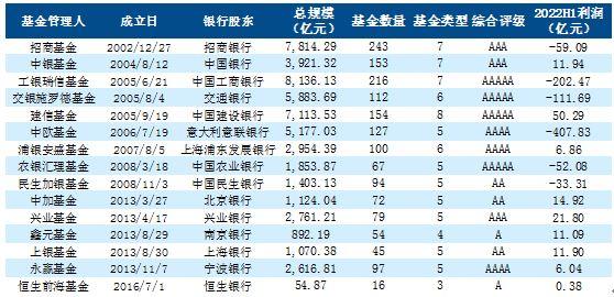 而2010年后成立的“银行系”基金则包括北京银行控股的中加基金、兴业银行控股的兴业基金、南京银行控股的鑫元基金、上海银行控股的上银基金、宁波银行控股的永赢基金、香港恒生银行控股的恒生前海基金等。