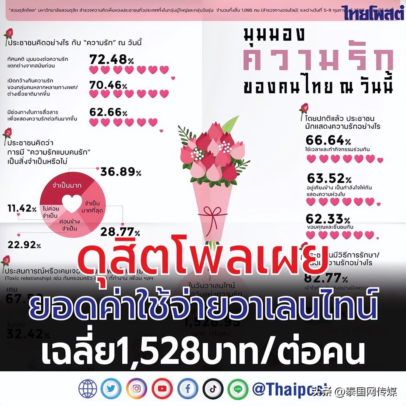 2月12日,据泰媒报道称,泰国川登喜皇家公立大学人文与社会科学学院就“当今泰国人的爱情观”,在本月5-9日对全泰1,095名大龄人士及年轻人进行在线调