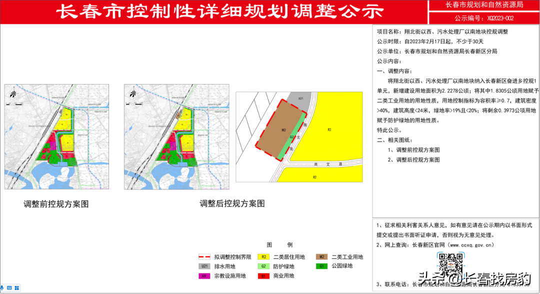 2月17日,长春新区管委会发布一条地块控规调整的通知。