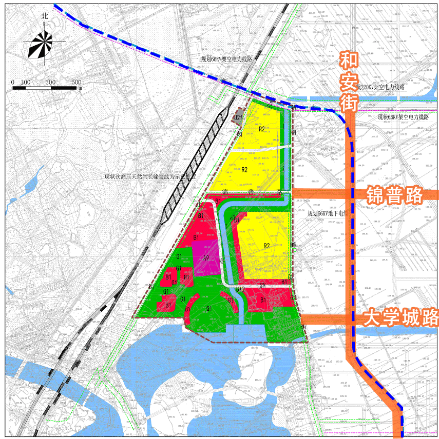 但是,细心的同事发现:规划图中除了已标识的地块性质外, 还标注一条代表轨道交通的蓝色虚线。