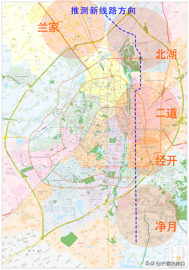 整条线路链接:北湖、二道、经开、净月、兰家等, 或将成为直通北湖和净月的南北向轨交线路。