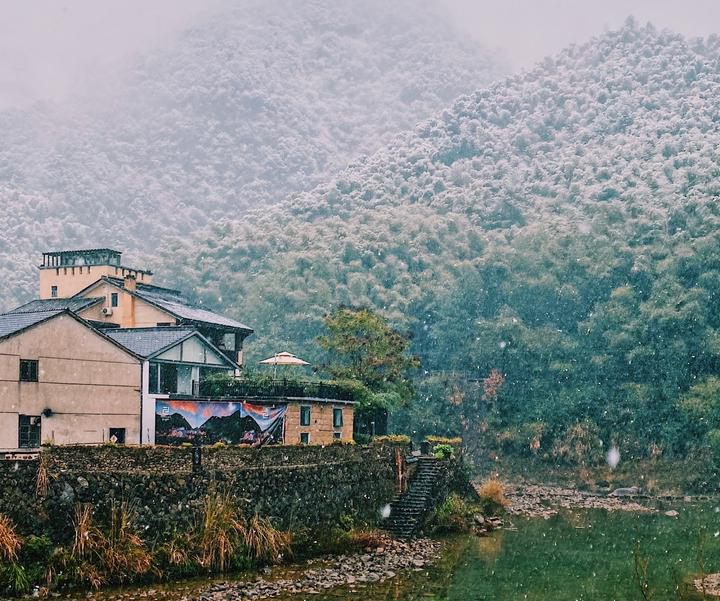 进到这个远离城市喧闹的古村落,最大的感觉就是格外闲适与静逸,如同山间的一幅古朴的水墨山水画。这里群山环绕,古树苍翠,推门可以就看到竹海,溪水清澈见底,村中老旧的古屋,浓郁的乡土气息扑面而来。