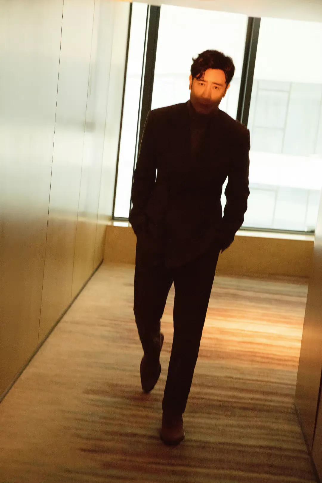 一次于和伟在剧组拍戏,音频小助理给他戴上了耳机。