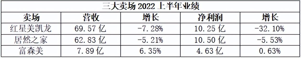 红星美凯龙、居然之家、富森美三大建材家居卖场2022上半年业