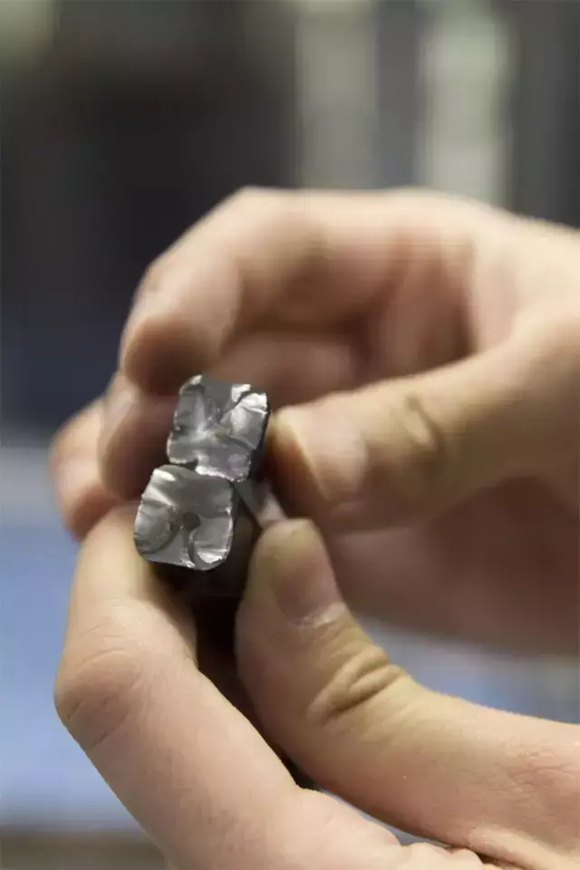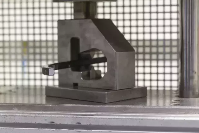 剪切性测试:放到“断头台”上承受了14.1吨才断开,比标准的7吨多了一倍……
