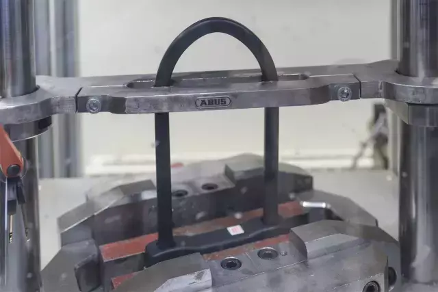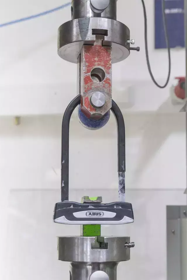 拉伸测试:这款ABUS的U型锁承受了5.8吨拉力才拉开!而且虽然被拉断了,但也只是有个小口,锁依旧打不开……
