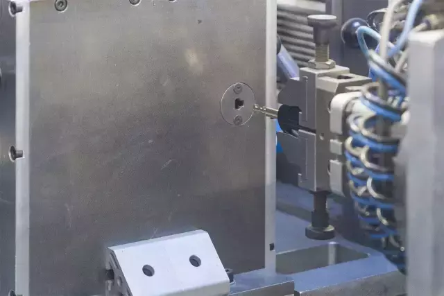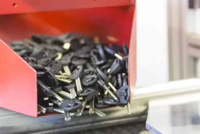 一次可以配两把钥,流水线工作。不过由于涉及商业机密,不方便透露具体工作流程,据工作人员介绍,这台自主生产的机器造价超过百万欧元