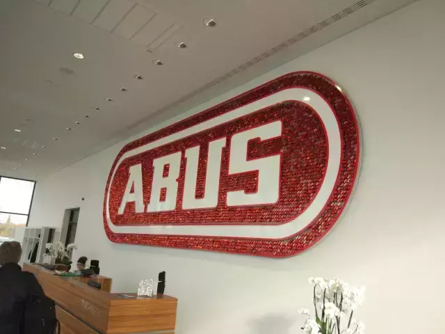 在ABUS的总部,墙上的Logo都是由自家产品组成的,很有创意