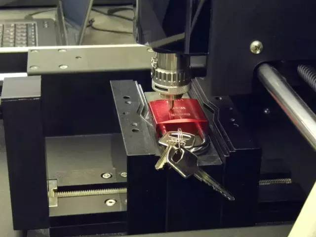 扭矩测试:由于之前的锁已经摧残的差不多了,所以这次从冰柜里又拿了一把锁,结果这把锁承受了1400N·m的扭矩(宝马水鸟的最大扭矩约为125N·m,大家感受一下)之后,没有多大变化,依旧使用顺畅,工作人员甚至把它送给了我当做纪念品……