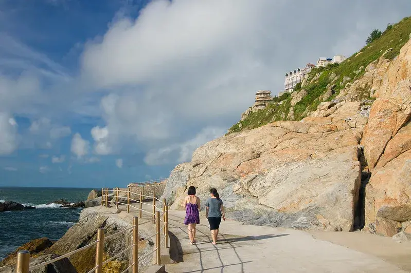 大角湾 是这里的招牌景点,旺季总是人满为患,可以在海上乐园体验一下正对大海的水上滑梯。 十里银滩 浴场则号称是世界最长、最宽的沙滩之一,沙质洁白细腻,游乐器材和游客都较少,如果想游泳,可以选择来此。