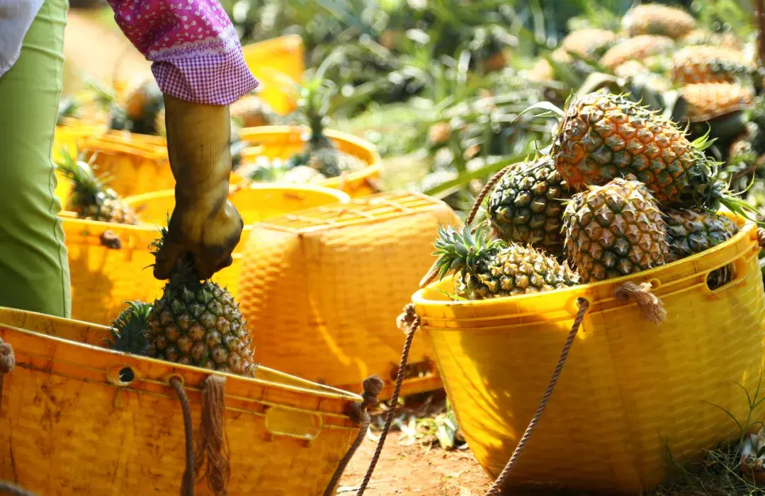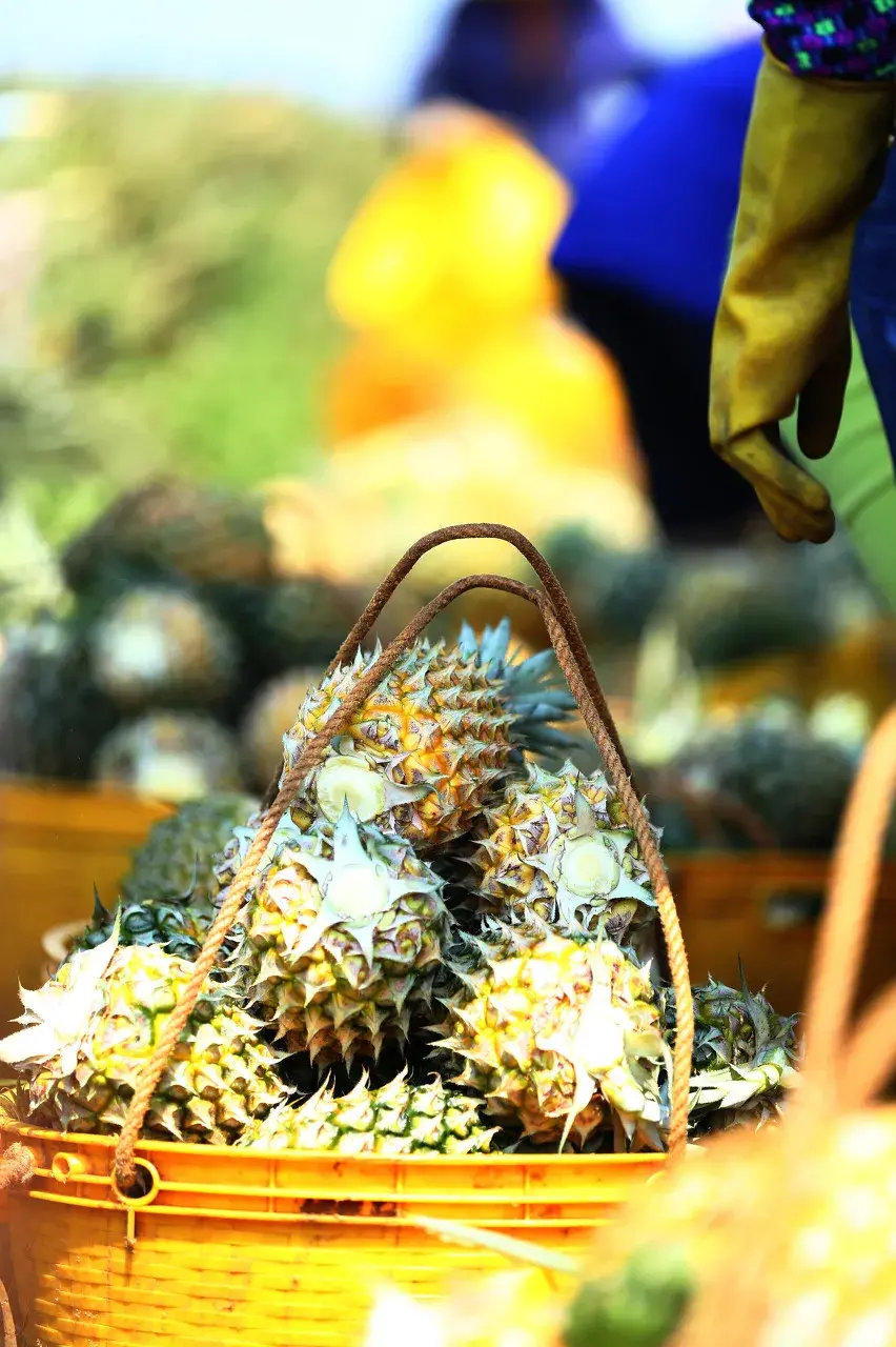 不过平时的“菠萝的海”只是一片绿色海洋,只有3月至5月菠萝成熟时,密密麻麻的金色果实才会“浮出海面”(切勿不问自取)。果农们将收获的菠萝有技巧地叠放成锥体装车运走,远望像极了一座座在移动的金字塔。