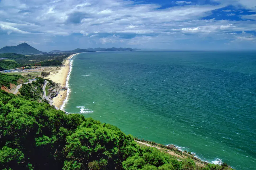 十里银滩与大角湾隔着一座小山坡,山坡顶上的半山观海平台就在连接两者的必经之路上,在这里眺望十里银滩,你便会明白它名字的由来。