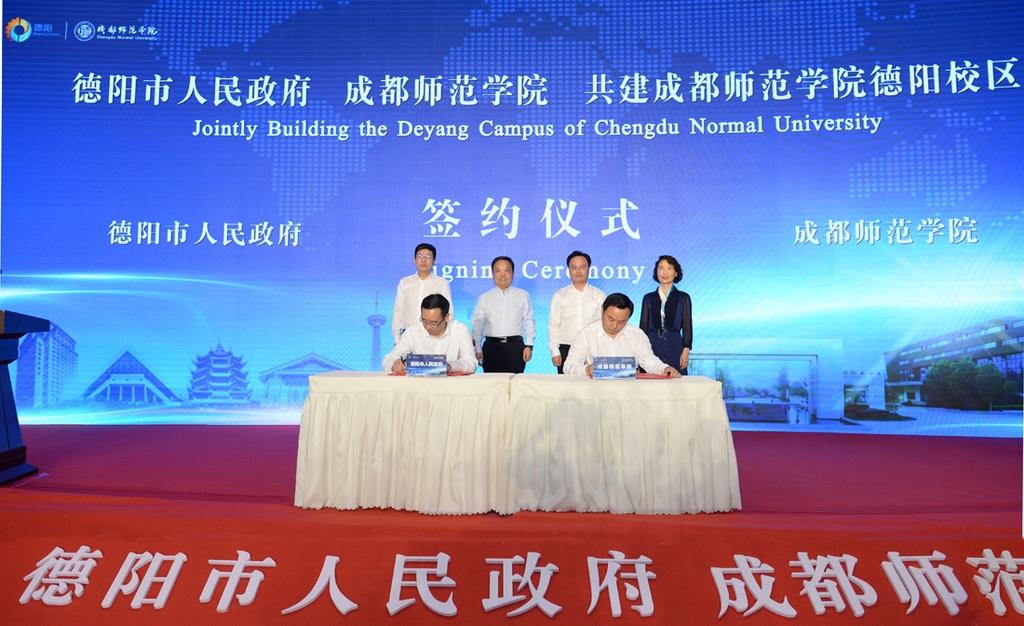 5月25日下午,德阳市与成都师范学院共建成都师范学院德阳校区(以下简称德阳校区)签约仪式在成都市温江区举行。双方将按照“政府建设、高校办学,校地联动、合创共赢”的原则,把德阳校区打造成校地合作的典范。