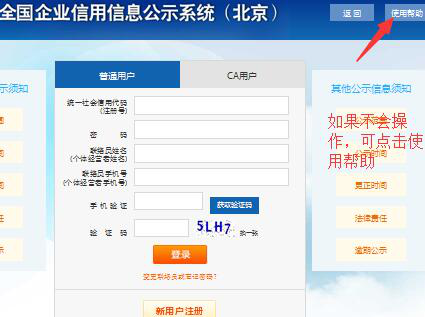 进入全国企业信用信息公示系统后,有不懂的地方,可以点击箭头处“使用帮助”。