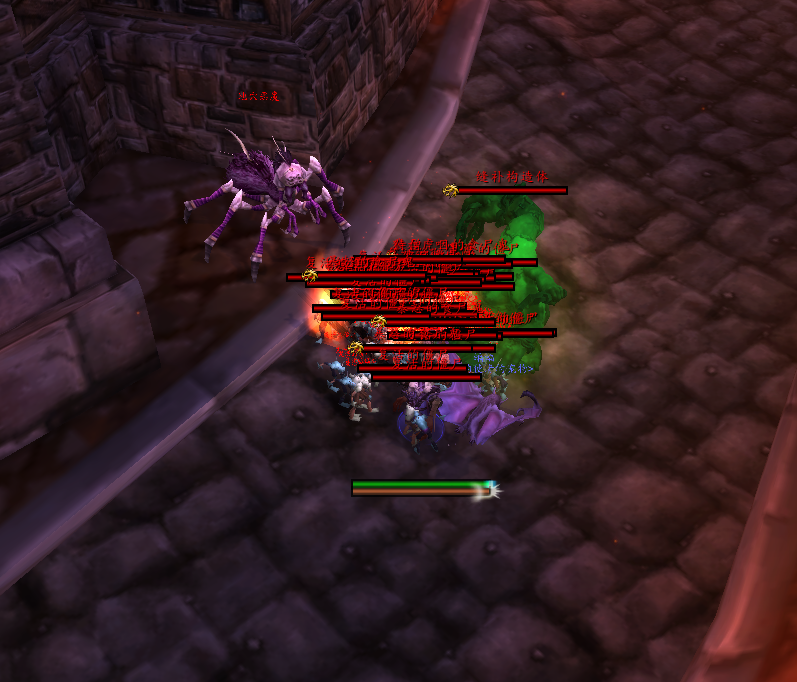 主要利用了僵尸的移速慢特点,远程跟着阿尔萨斯,并且帮助他击杀小怪,一直到达3号BOSS面前。(如果这时僵尸追上来了,再次拉倒外面广场去。)