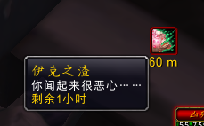 在中了 [伊克之秽] 技能,会获得持续一小时的DBUFF,不能死亡,不能开启“圣盾术”“寒冰屏障”等技能,否则DEBUFF会消失,成就将无法达成。