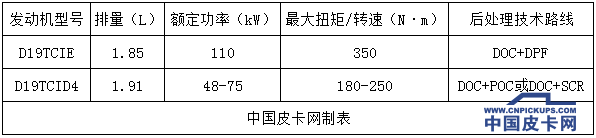 D20B发动机目前在国内皮卡市场中仅搭载在江铃集团轻汽骐铃T7Plus上,满足国五排放要求,且具有升级国六的潜力。