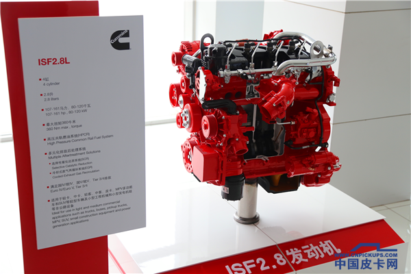 福田康明斯2.8TISF柴油发动机是国内高端柴油发动机的代表之一,其采用了博世高压共轨缸内直喷的技术,配有可变截面涡轮增压器,可提供最大功率130kW,最大扭矩365N•m。