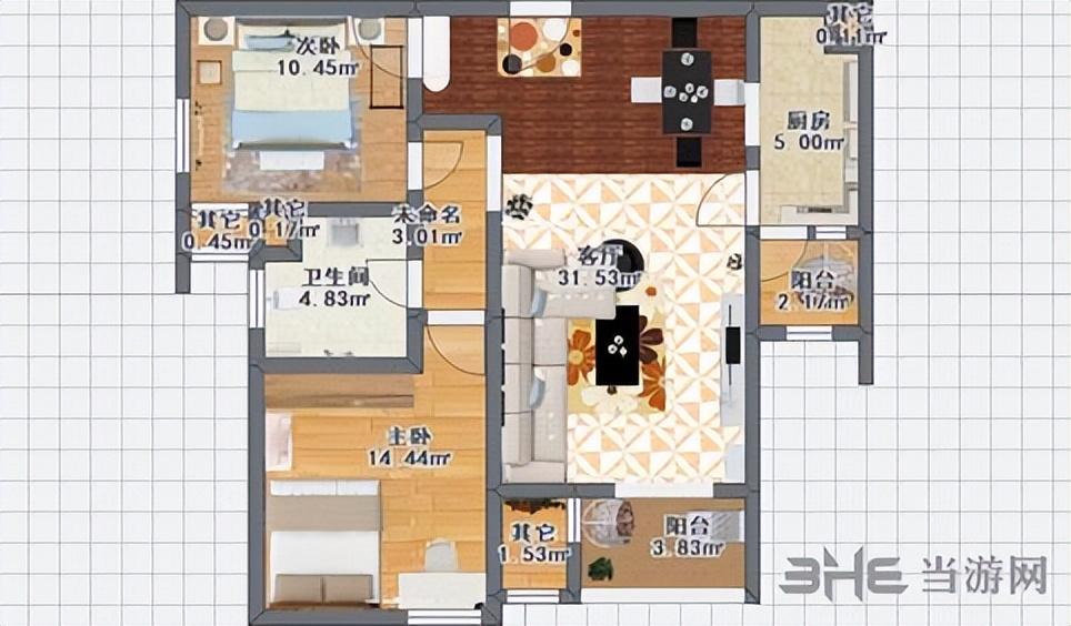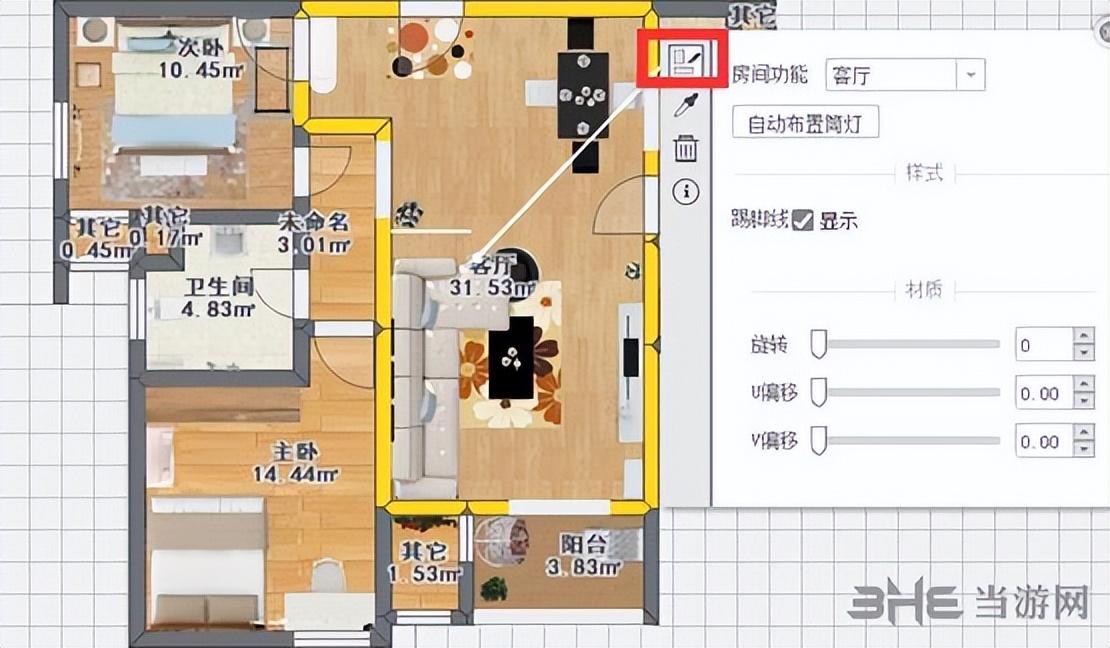 4、根据需要在左侧模型库中硬装类别选择多种材质布置各个区域即可
