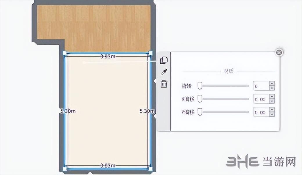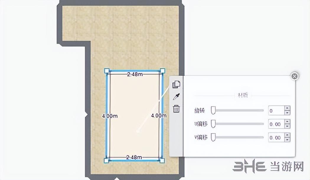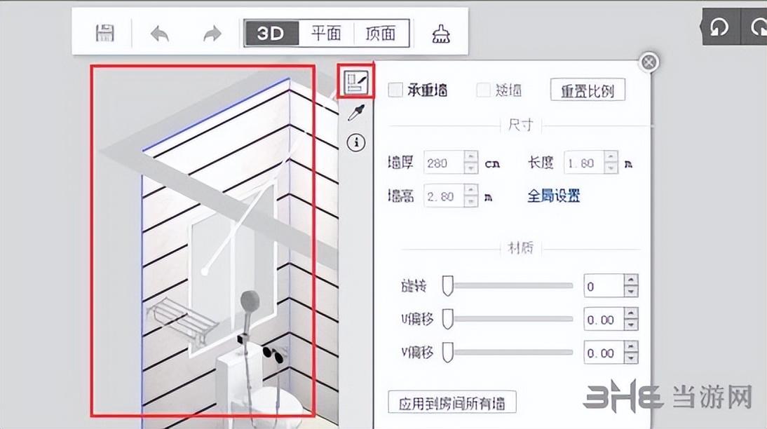 4、通过右上角旋转功能依次选择卫生间不同墙面进行该分区操作