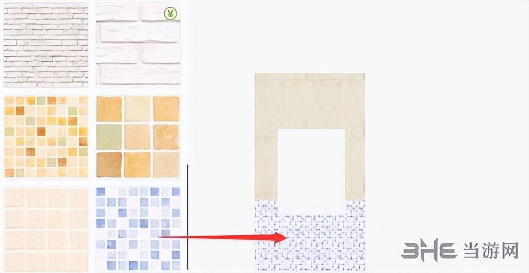 3、挑选不同材质墙砖布置在两个区域并调整偏移达到整砖展示效果