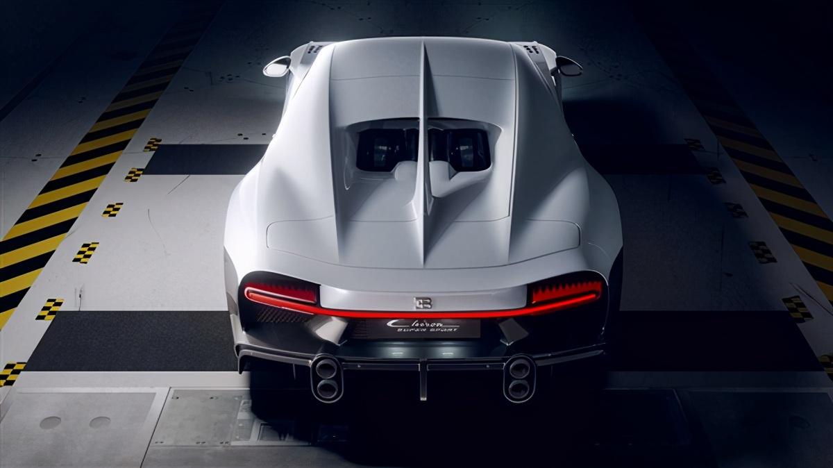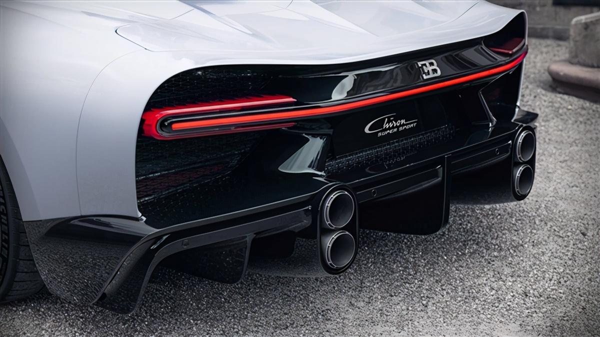 Chiron Super Sport的车尾部分较普通版加长了25cm,同时为了优化扩散器的空间而改变了排气造型布局,首次使用了竖向的双边两列共四出排气。