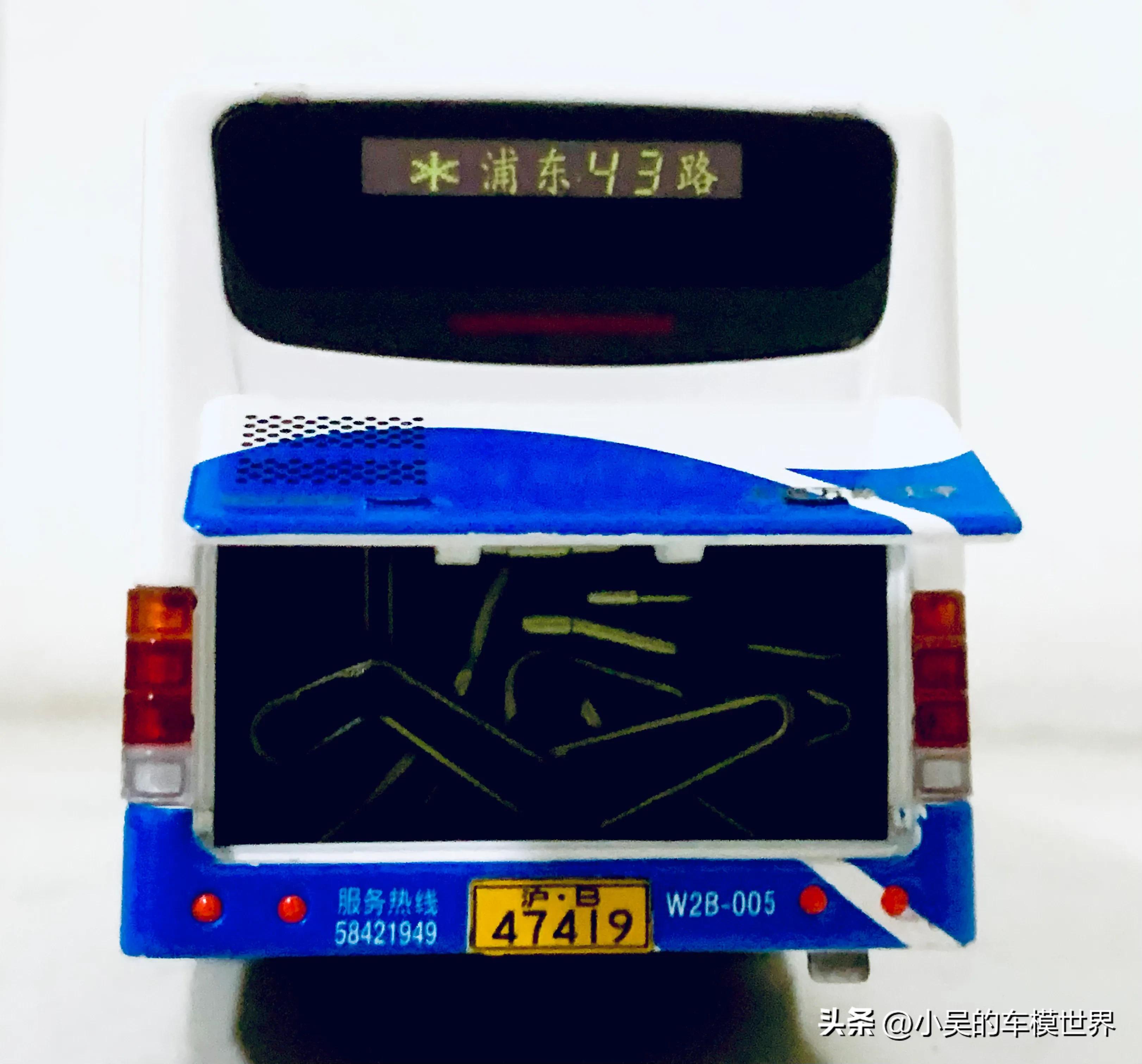 这款车型被上海公交迷们称为“大酸菜”,不知道是不是这个前脸的设计呢?大灯灯珠为独立件,雾灯为分色,还原了实车牌照和自编号。这款模型有非常多的路号版本,甚至可以自己定制,小吴今天给大家介绍的这款则是浦东43路。