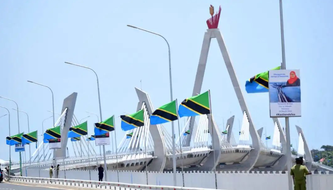由中国企业承建的坦桑蓝跨海大桥通车典礼近日在达累斯萨拉姆市举行,坦桑尼亚总统萨米娅·苏卢胡·哈桑出席仪式。
