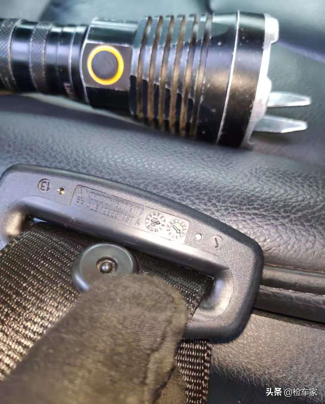 全车安全带出厂日期均为2010年8月份,符合车辆总装出厂日期,同时安全带固定螺丝无拆卸痕迹,排除安全带维修嫌疑,结合目前对车辆综合检测可以确定安全带为原厂,排除车辆的严重撞击事故。
