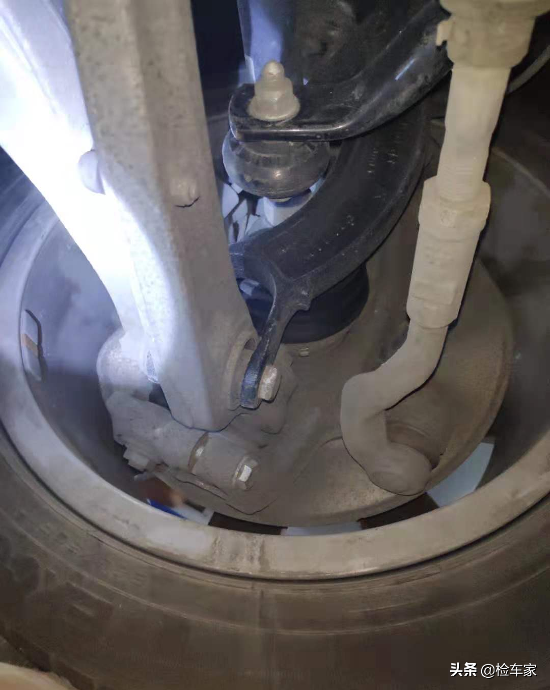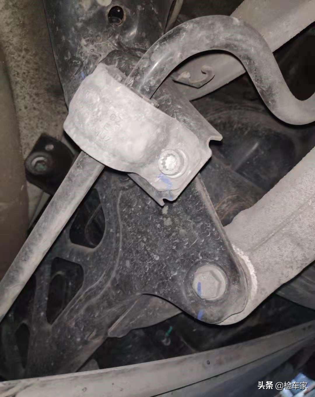 首先车辆的悬挂系统经检测没有发现任何异常,各个悬架部件固定螺丝均无拆卸无扭曲变形修复更换现象,第一印象还不错,赞一个~