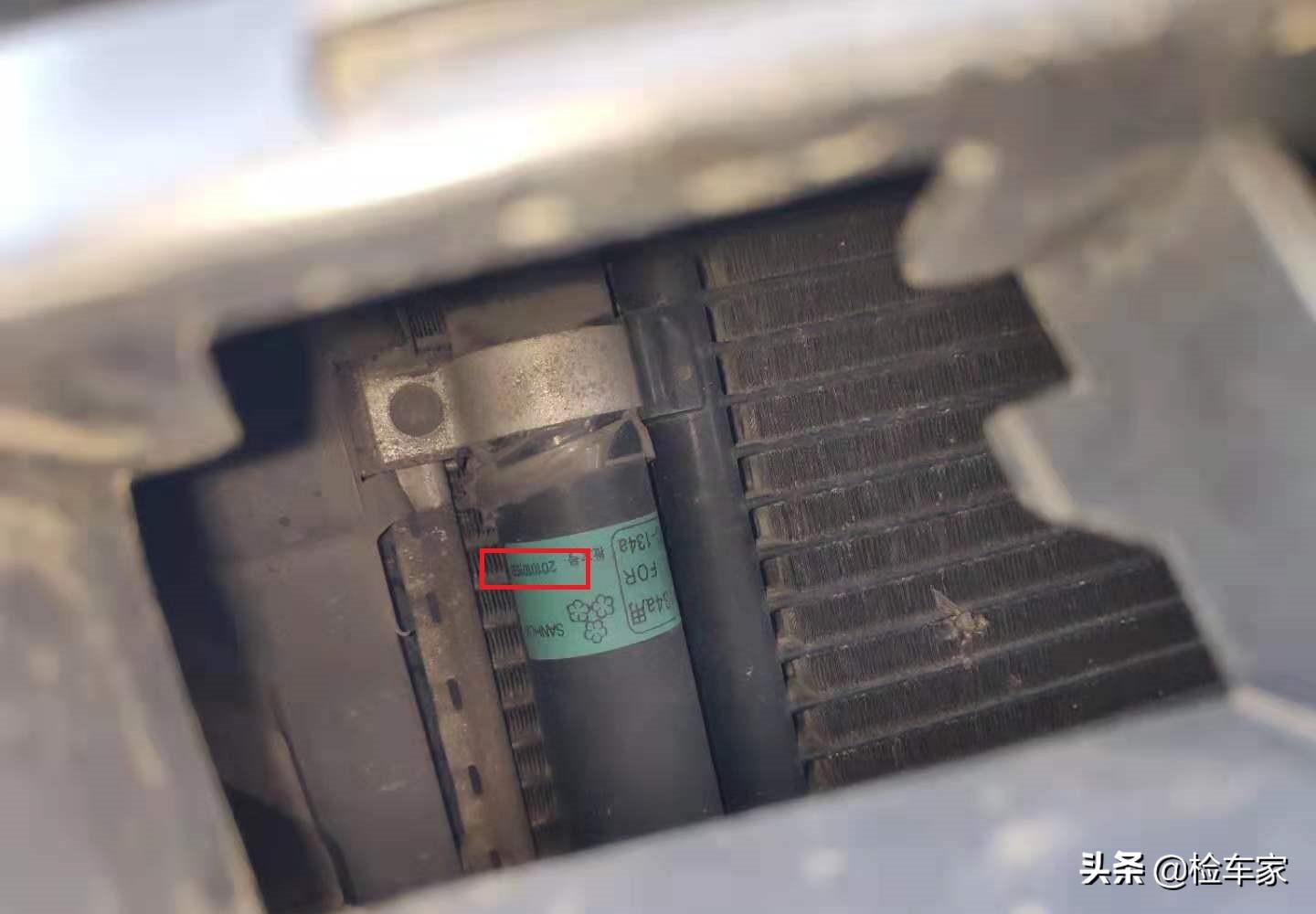 前部冷凝器出厂日期为2010年10月,(距离太近手机不能对焦,大家脑补吧)同时水箱一套固定螺丝无二次拆卸迹象,经检测判断为原厂。