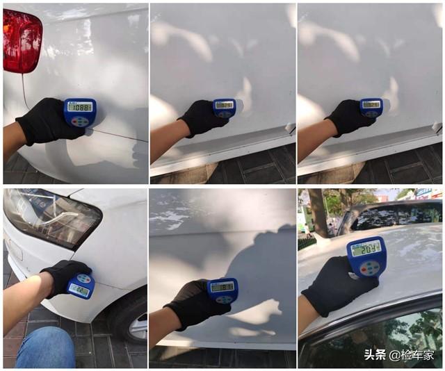 确定原车漆面数值后对整车外观金属漆面检测下来发下此车左前叶子板喷漆丶左侧顶边梁喷漆丶右前门喷漆丶右后叶子板钣金喷漆丶右后门钣金喷漆丶左后门钣金喷漆,喷漆比较多局部钣金修复,但钣金面积不是很大,排除事故,磕磕碰碰就不能避免了。