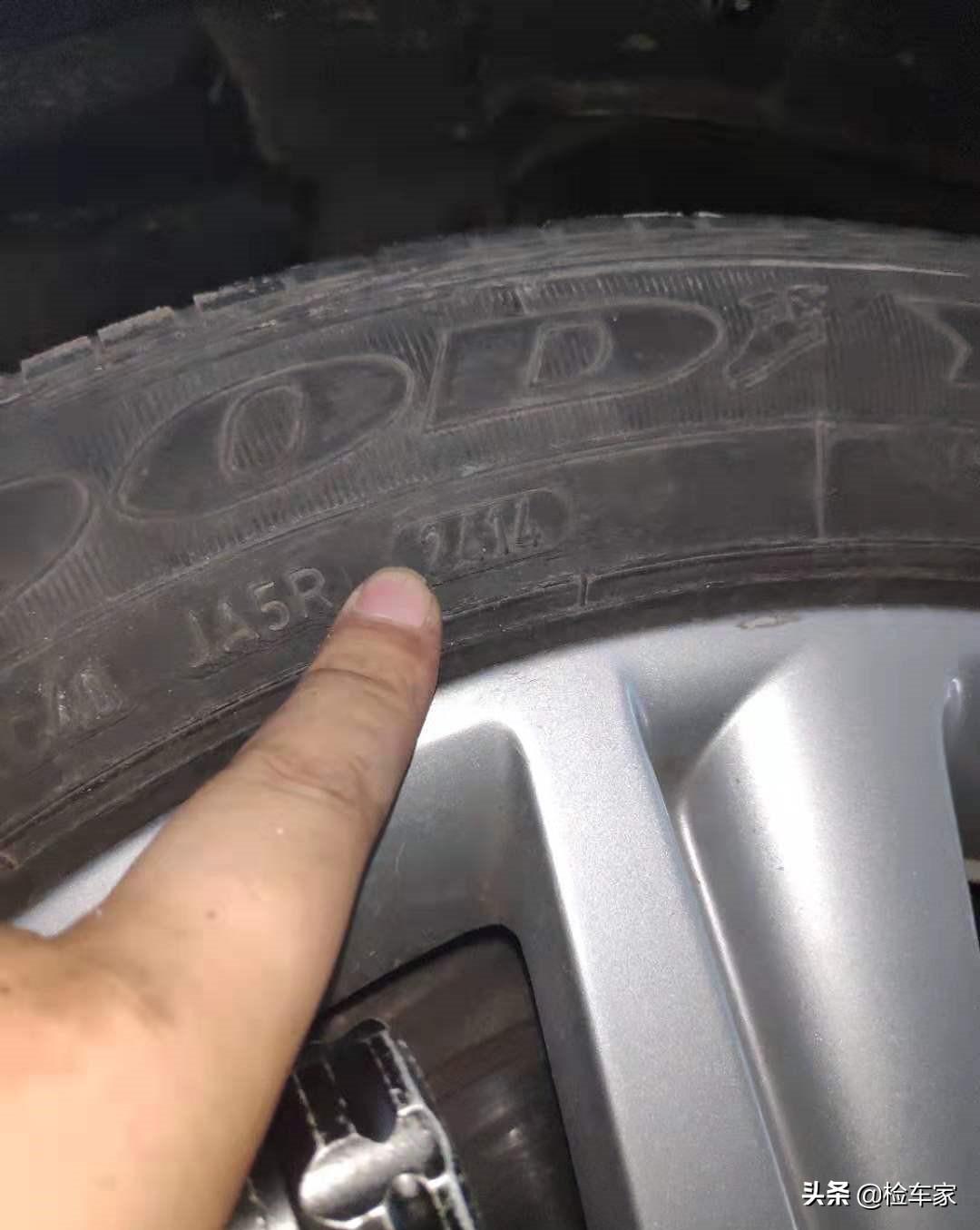 全车2014年24周的轮胎出厂日期相同,轮胎品牌相同,同时四条轮胎没有开裂鼓包现象,建议入手后进行更换,9年8万公里也不多但轮胎时间寿命已经到了。