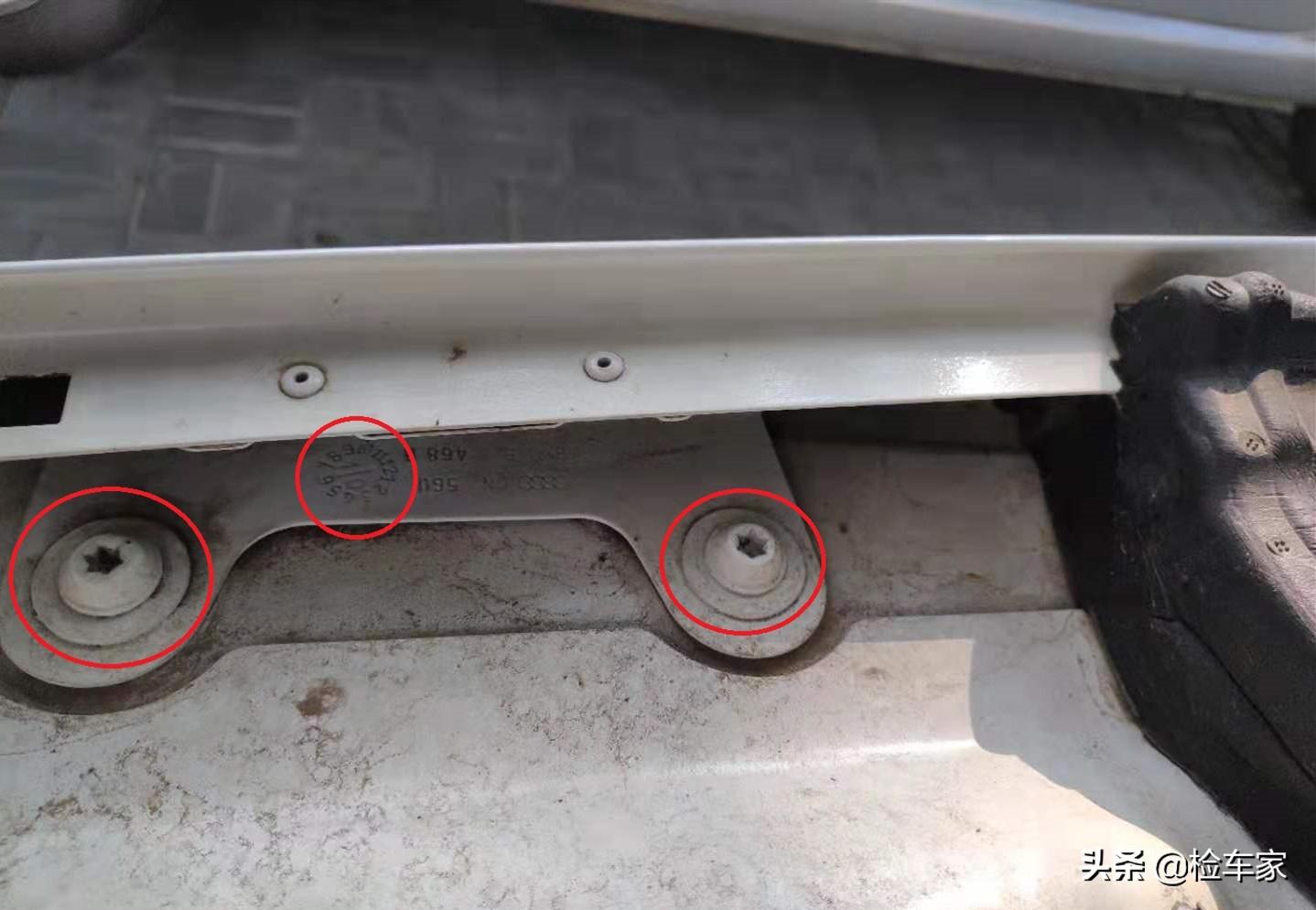 座椅底部也同样如此,固定螺丝无拆卸拧动痕迹,同时座椅底部 金属部件没有水泡锈蚀打磨痕迹,座椅底部各个缝隙内没有泥沙存在。