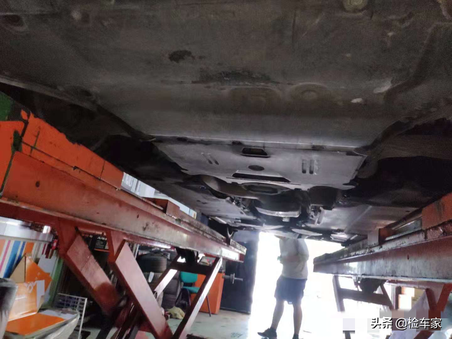 一番简单的路试后瑶瑶跟随卖家来到事先约好的修理厂进行上架对底盘进行检查;车子缓慢抬起来后车身底盘看上去不是想象中的那样,整体比较规整,没有明显的漏油现象,具体存在哪些问题及隐患接下来进一步查看。