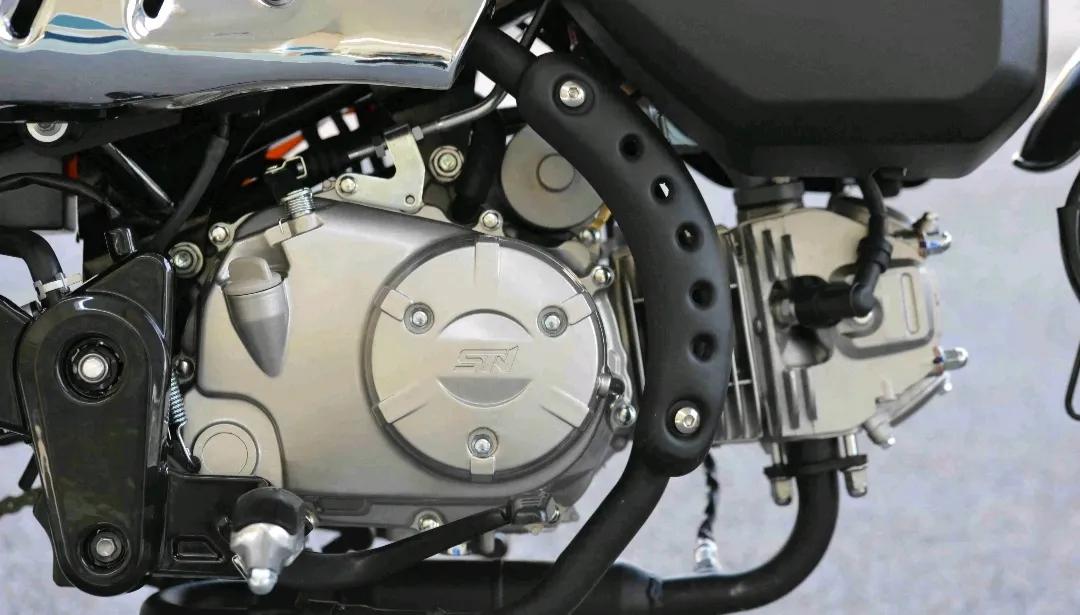 动力方面 ,这款车搭载的是一款卧式单缸风冷电喷发动机,它实际排量124.6cc,最大马力8.8匹,最大功率6.5KW,最大扭矩9.5N·m,动力调校偏中低转速5000转时释放最大扭矩,与之配套国际四档变速箱,官方百公里油耗2.3L,最高设计时速90km/h。