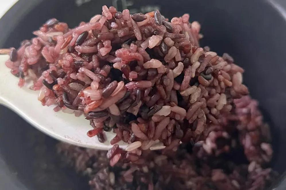 2、将洗好的米,一股脑倒入高压锅中,加适量清水,启动杂粮饭功能,如果家里没有高压锅,记得要提前将糙米放入清水中浸泡3个小时;