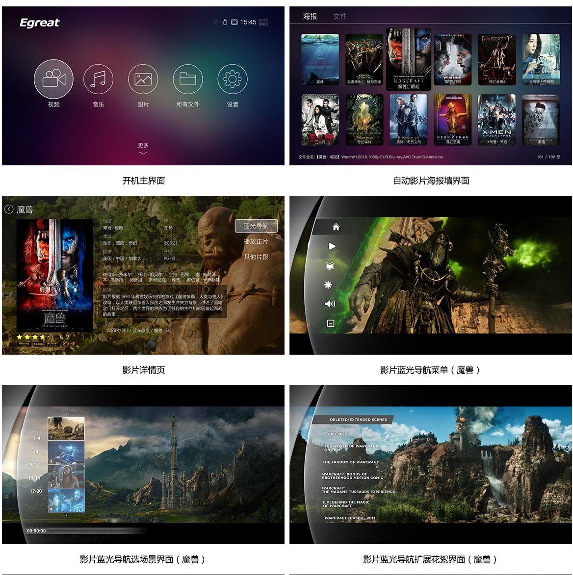 亿格瑞本次发布了具有蓝光导航、动态字幕、智能海报墙、HDR10广色域、Imprex色彩处理引擎及智能温控散热等行业独有功能的A10发烧级4K蓝光导航播放器等全新产品。