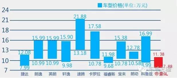 作为吉利“3.0标准”打造的一款A+级轿车,吉利帝豪GL有着很大的野心,7.88万元起的售价,还可以享受3000元的厂家补贴,相当于7.58万元起步。价格区间直接打到主流合资A级车的底部,进入细分市场中比较坚挺的价格区间中。
