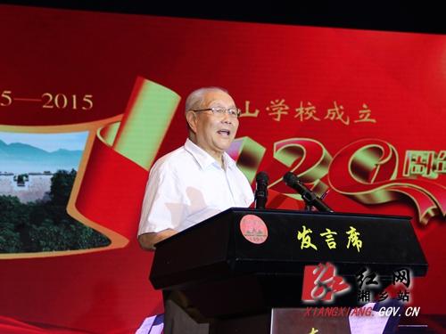 湘乡市委副书记、市长彭瑞林代表湘乡市欢迎各届校友、各界朋友的到来。他指出,当前湘乡正处于加速转型发展的关键时期,希望全体师生、校友谨记“公诚勤俭”的校训,一起努力把东山学校建设好,把湘乡建设好。